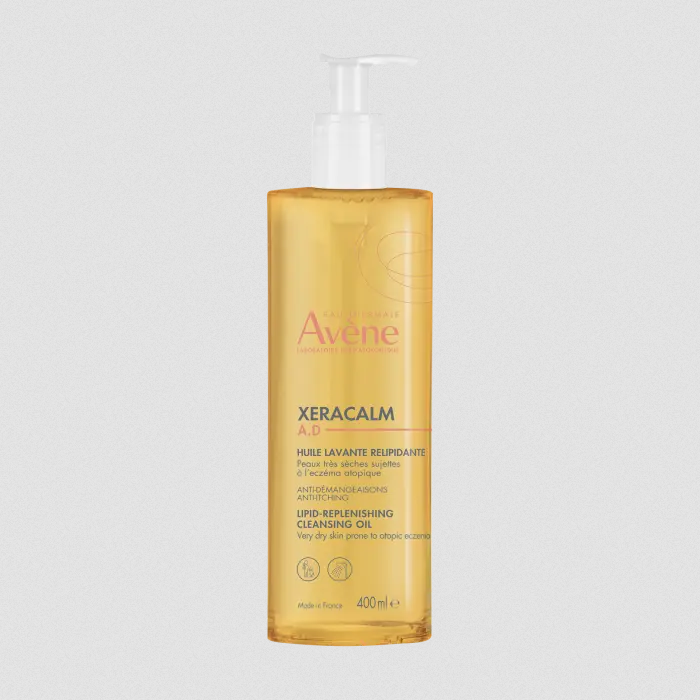 XeraCalm A.D Lipid-Replenishing Cleansing Oil gently cleanses and soothes very dry skin prone to itching. Soap-free and with a physiological pH, this cleansing oil has lipid-replenishing power. As the first step in a caring routine to prevent dryness and itching, it leaves the skin soft and comfortable. Its formula combines the first post-biotic active ingredient derived from Avène Thermal Spring Water, I-modulia®, which reduces sensations of itching*, and fights against irritation caused by dryness, with Cer-omega, skin-like lipids that act on dryness and restore the skin's barrier, and Avène Thermal Spring Water, which is naturally softening, soothing, and anti-irritating. Fragrance-free and non-comedogenic, XeraCalm A.D Lipid-Replenishing Cleansing Oil is ideal for the skin of infants, children and adults.