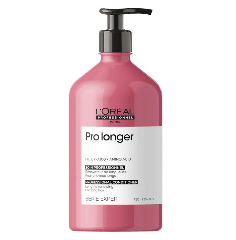 Pro Longer conditioner for long hair helps to make long hair appear thicker and visibly healthier and stronger looking. When used with the Pro Longer shampoo for long hair, there is a hair breakage reduction*. The Filler A-100 technology used is patented to L'Oréal Professionnel, and it works by penetrating the fiber core to plump and thicken the hair from the inside. The formula works on thin ends, or areas where help is most needed.