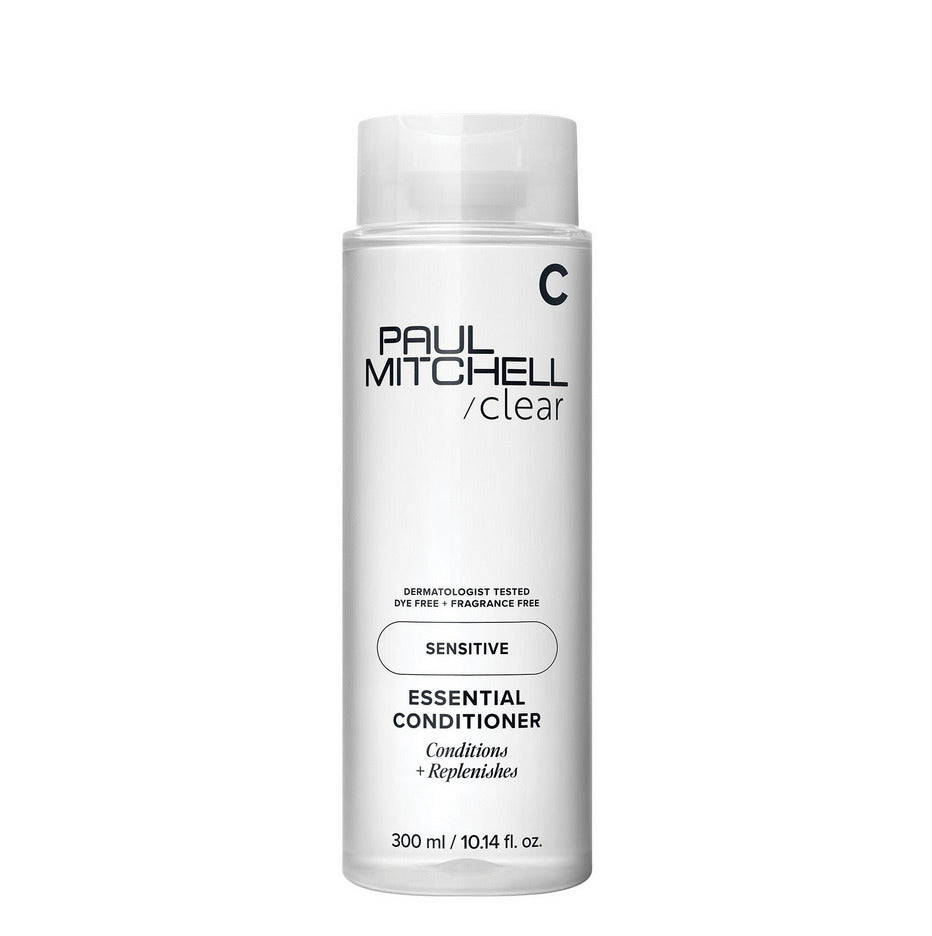 Gentle enough for daily use, Paul Mitchell Clear Essential Conditioner replenishes strands and leaves hair feeling light, soft and manageable, without irritating sensitive scalp or skin. Purposefully formulated with just 9 essential ingredients, zero dyes or fragrances and dermatologist tested for sensitive skin, this lightweight conditioner is perfect for people with sensitivities.