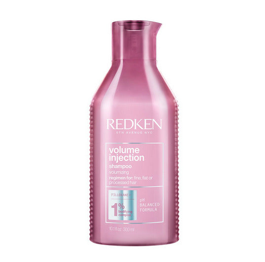Redken's Volume Injection Shampoo is formulated with Redken's Bodifying Complex which includes Filloxane to help provide instant volume to fine, flat, or processed hair. This volumizing shampoo lightly cleanses with gentle scalp care, giving hair a volume boost, creating lift and body.